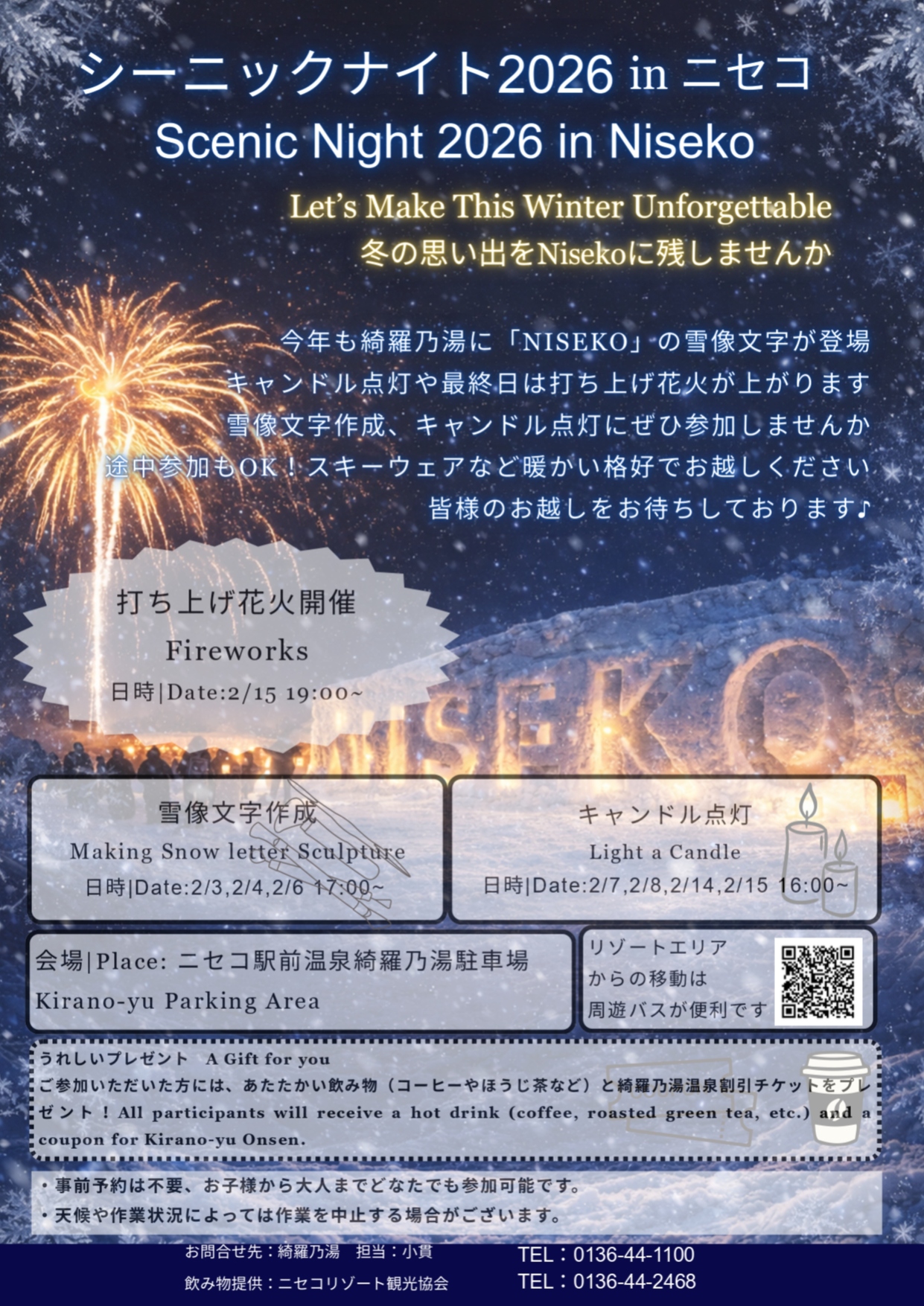 ぜひ暖かい服装で、ニセコでの冬の思い出作りに会場へお越しください。